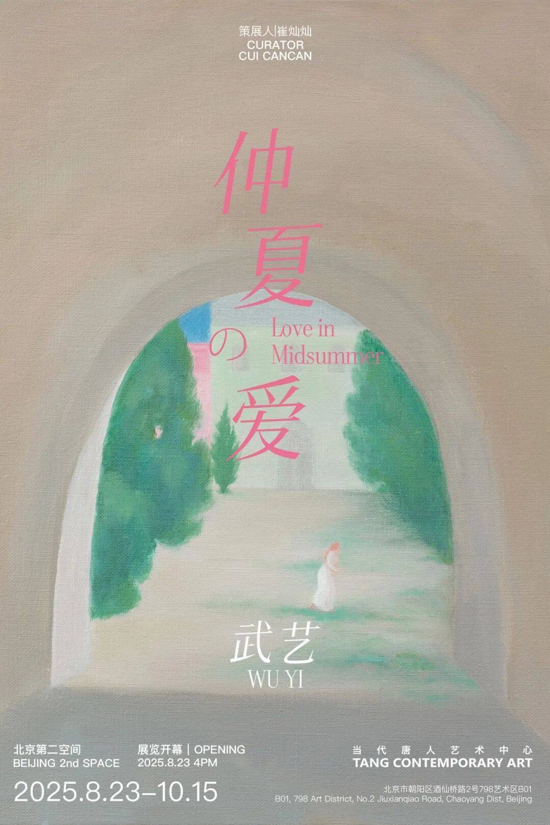 武艺在当代唐人艺术中心的个展“仲夏の爱”的策展人是崔灿灿。在展览同名文章《仲夏之爱》中,崔灿灿用弥漫着个人记忆与思绪的文字,带领他文字的读者和武艺绘画的观者,一同步入艺术家的精神之地。