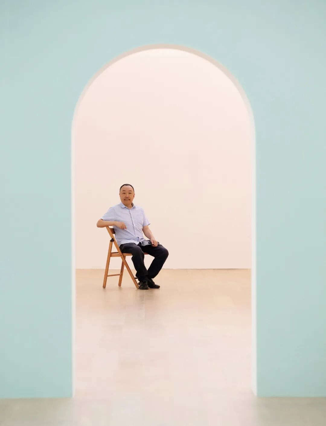 用散漫的回忆与文字 , 崔灿灿将武艺在展览“仲夏の爱”中展出的多个系列,点化成一团雾气,一片云霭氤氲中朦胧隐现一座仙居与一位旅人:仲夏的“天宫”与“人间”坐落其间,饱满莹润的蜜桃超越物理的质感与状态,幻化成一颗颗仙丹,有人服下仙丹脱离尘世,有神坠落情爱苦修几世……与其说是画者,此刻的武艺不如说更像是旅人,在他无止尽的心游之中,他孜孜不倦地寻找,并庆祝生命永恒的礼赞。