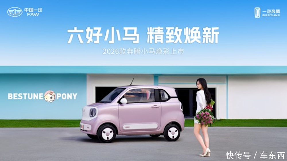 车东西7月27日消息,就在今天,2026款奔腾小马焕彩上市,售价区间为3.49~4.59万元,新车迎来12项功能/配置升级,持续提升用户出行体验。